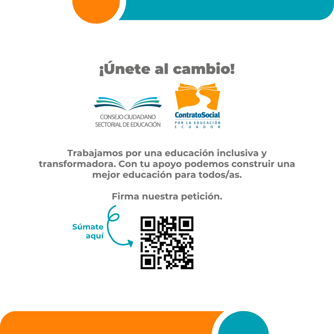Desde el Consejo Ciudadano Sectorial de Educación del Ecuador, con participación activa del Contrato Social por la Educación, te invitamos a unirte a este llamado por una educación justa, accesible y sin barreras para todas las personas.